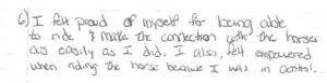 “I think that anyone who is willing to take part in therapeutic riding will benefit from it tremendously. Thank you so much for what you are doing and will continue to do for many others.”